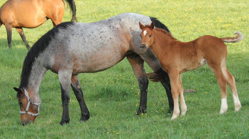 - FLORDANA de Blonde (Cesano II X Lord X Calypso I) suitée d'une femelle de Alto du Fougnard gestante de Very Star Kerveyer